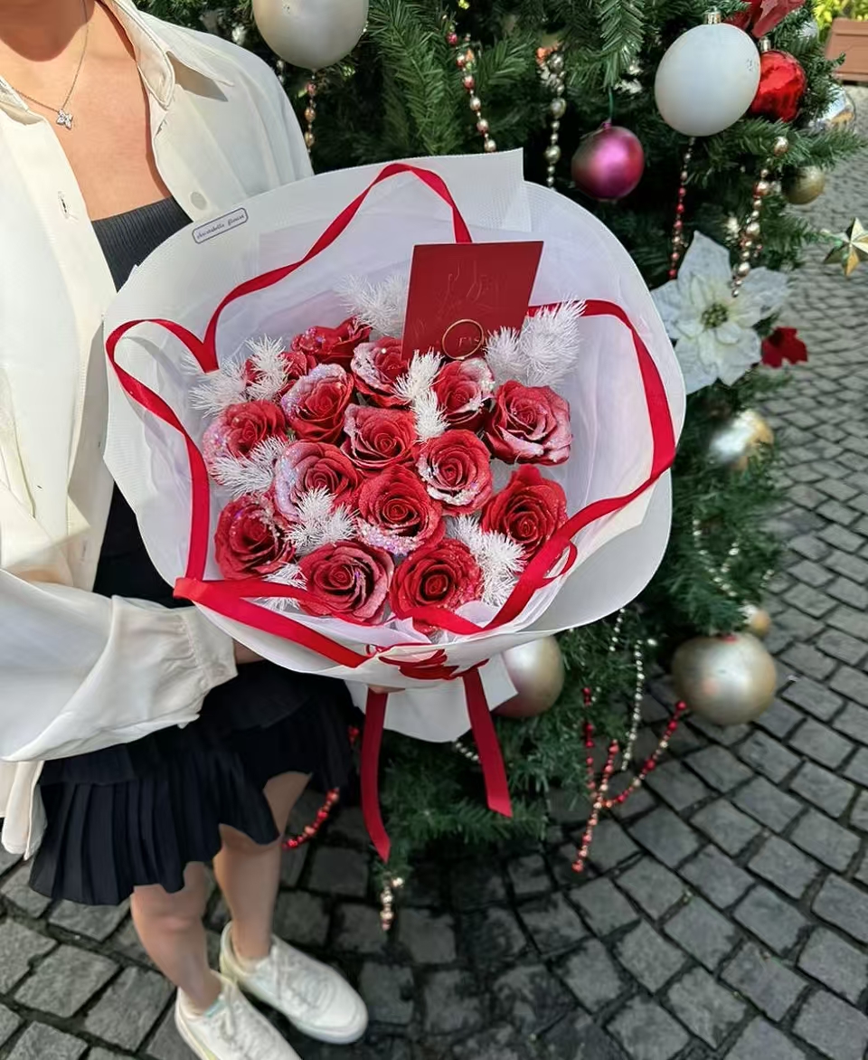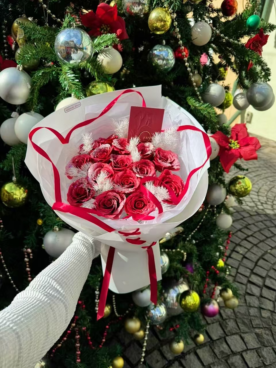 X’mas 16 Stalks Soap Red Roses Flower Bouquet