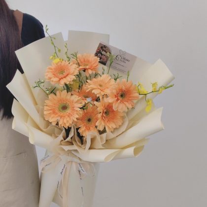 8 Stalks Fresh Mix Orange Gerbera & Dancing Lady Flower Bouquet