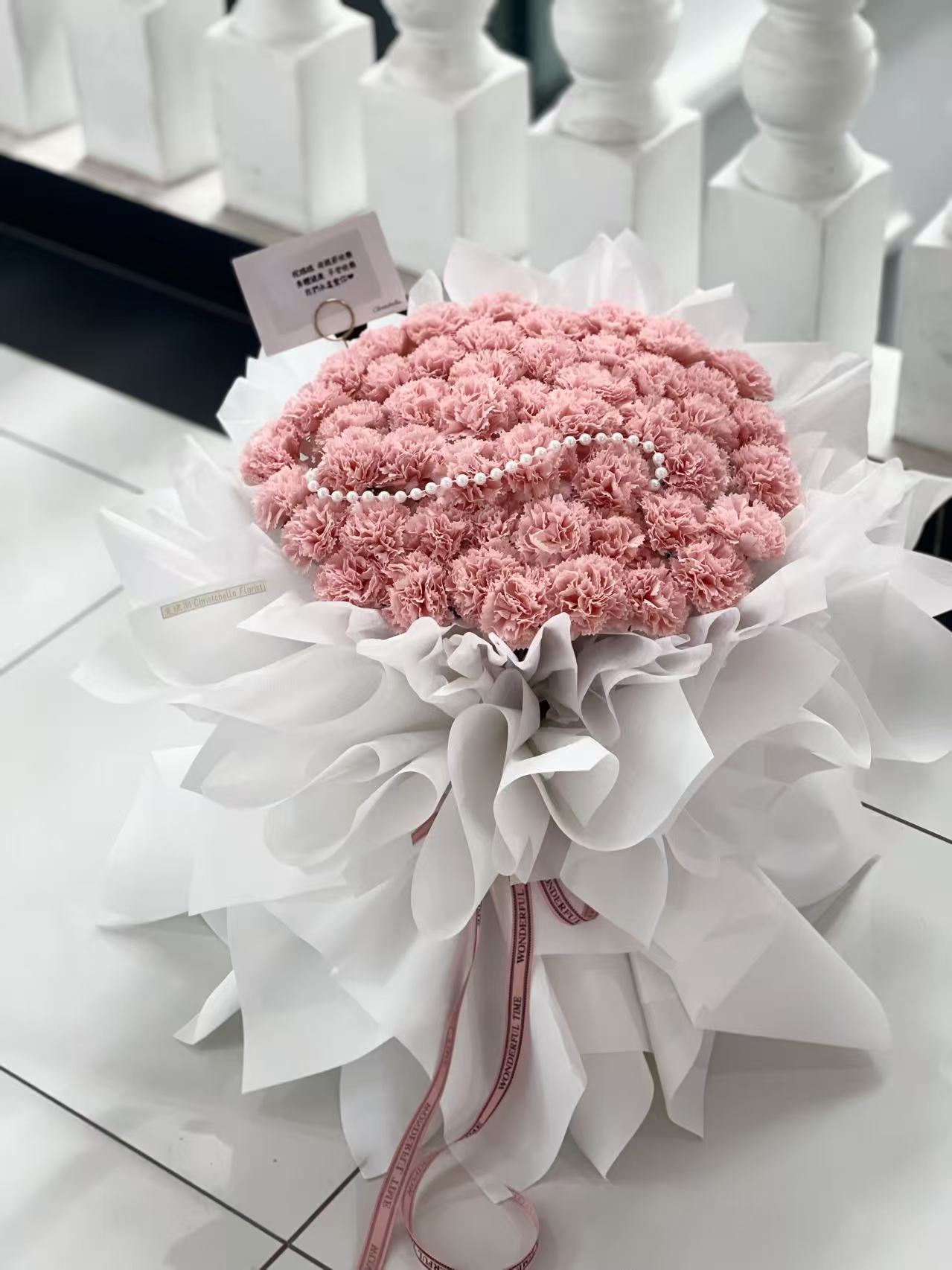 -50 Stalks Fresh Pink Roses (White Wrapping) XL Size-RM485