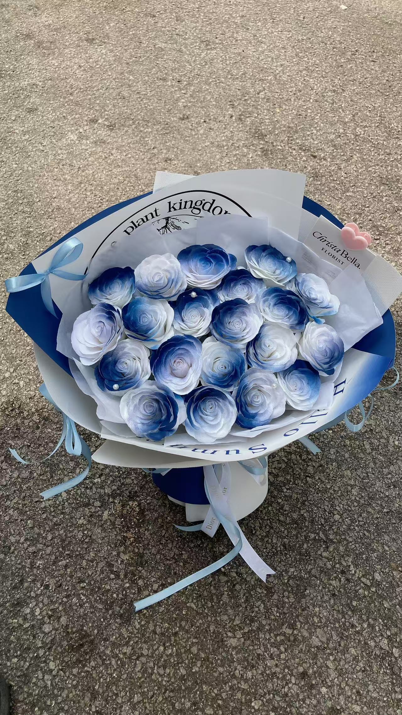 Details:20 Stalks Ombre Malta Blue Roses(Blue&White Wrapping)Msize-(Fresh RM270/ Soap RM190)