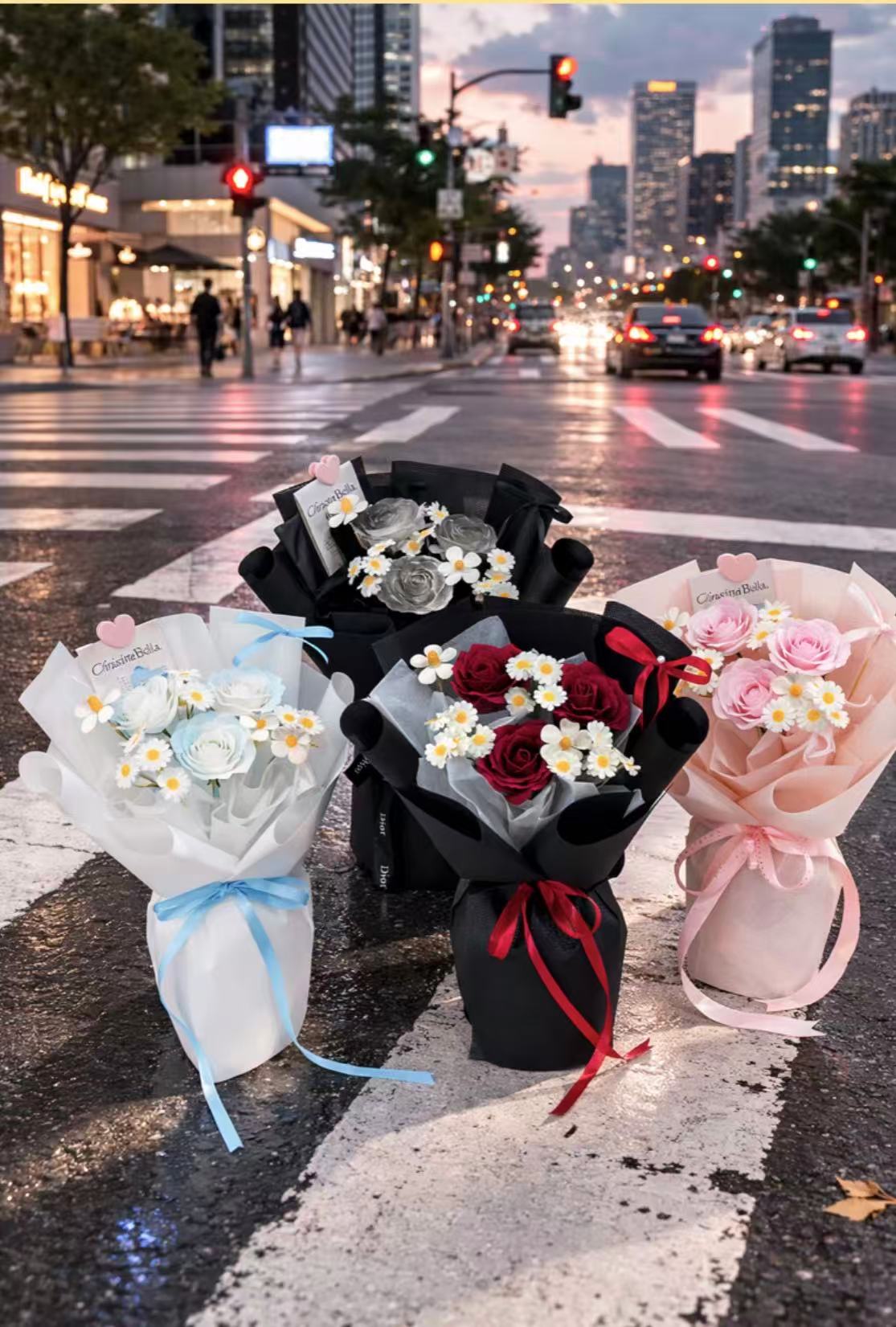 The size and color might vary of every differents bouquets. As all our bouquets and artwork are handmade by our dedicated florists.