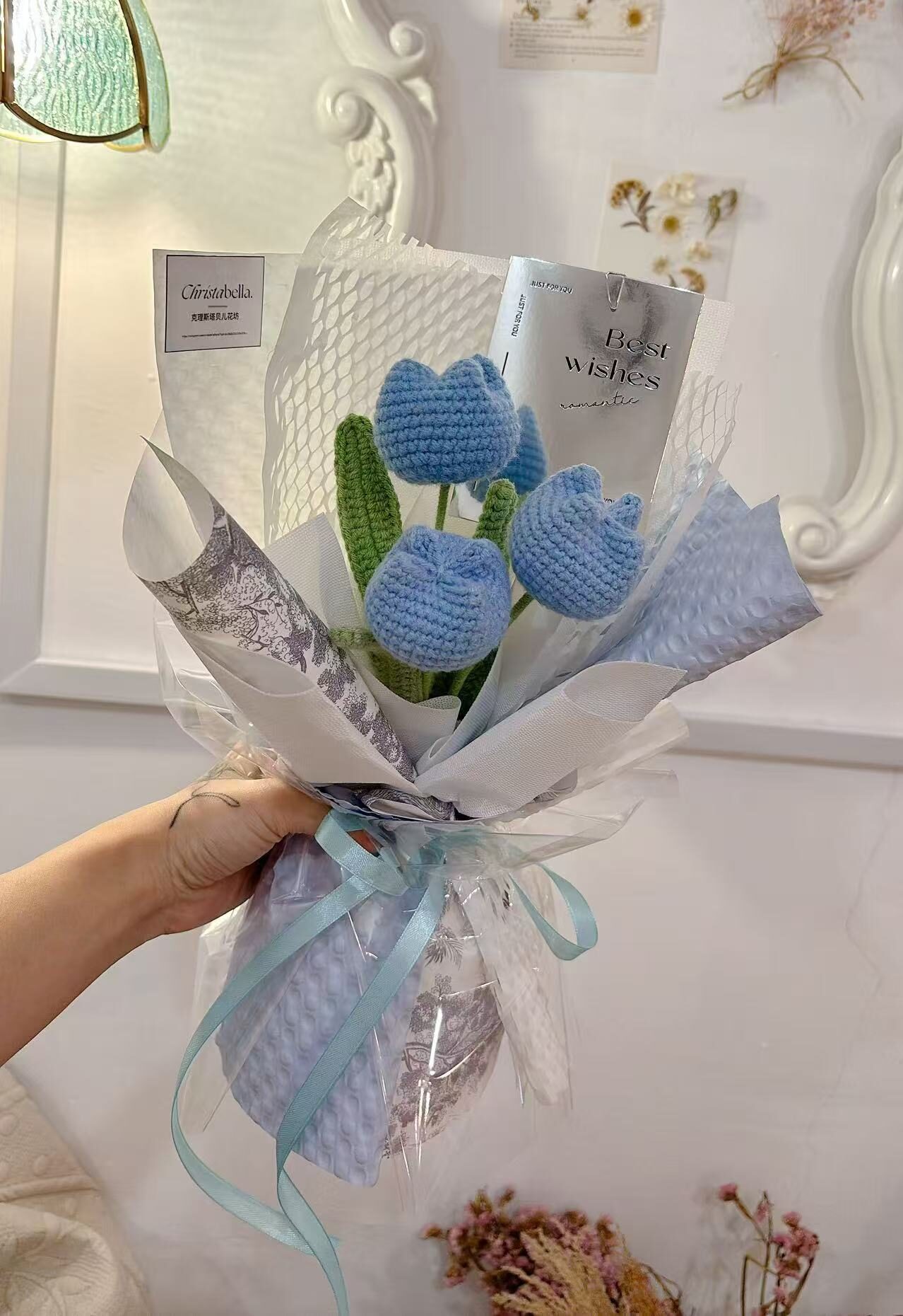 Details: 3 Stalks Knitted Flower + White Wrapping (RM90)