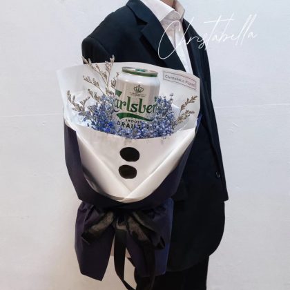 Details: 1 Can Carlsberg + 2 Stalks Freah Baby Breath + Nay Wrapping