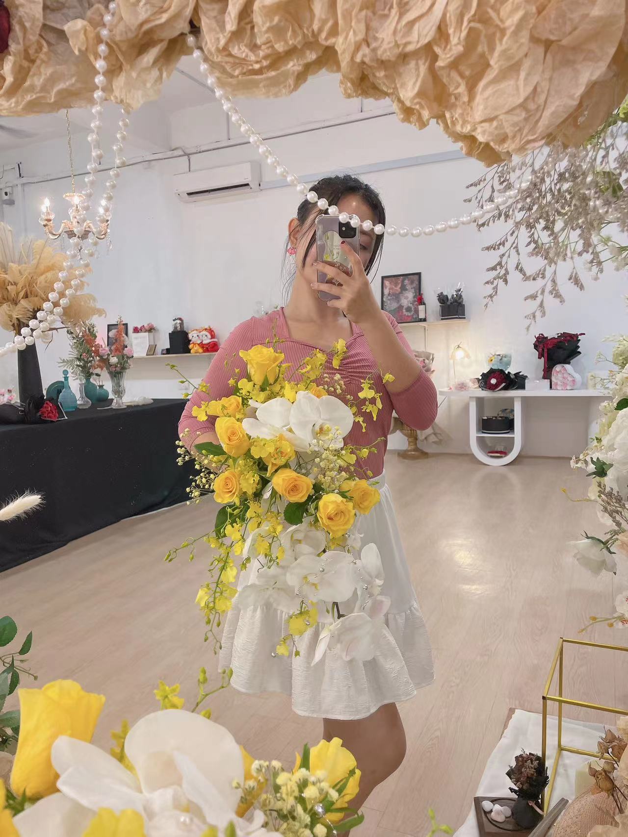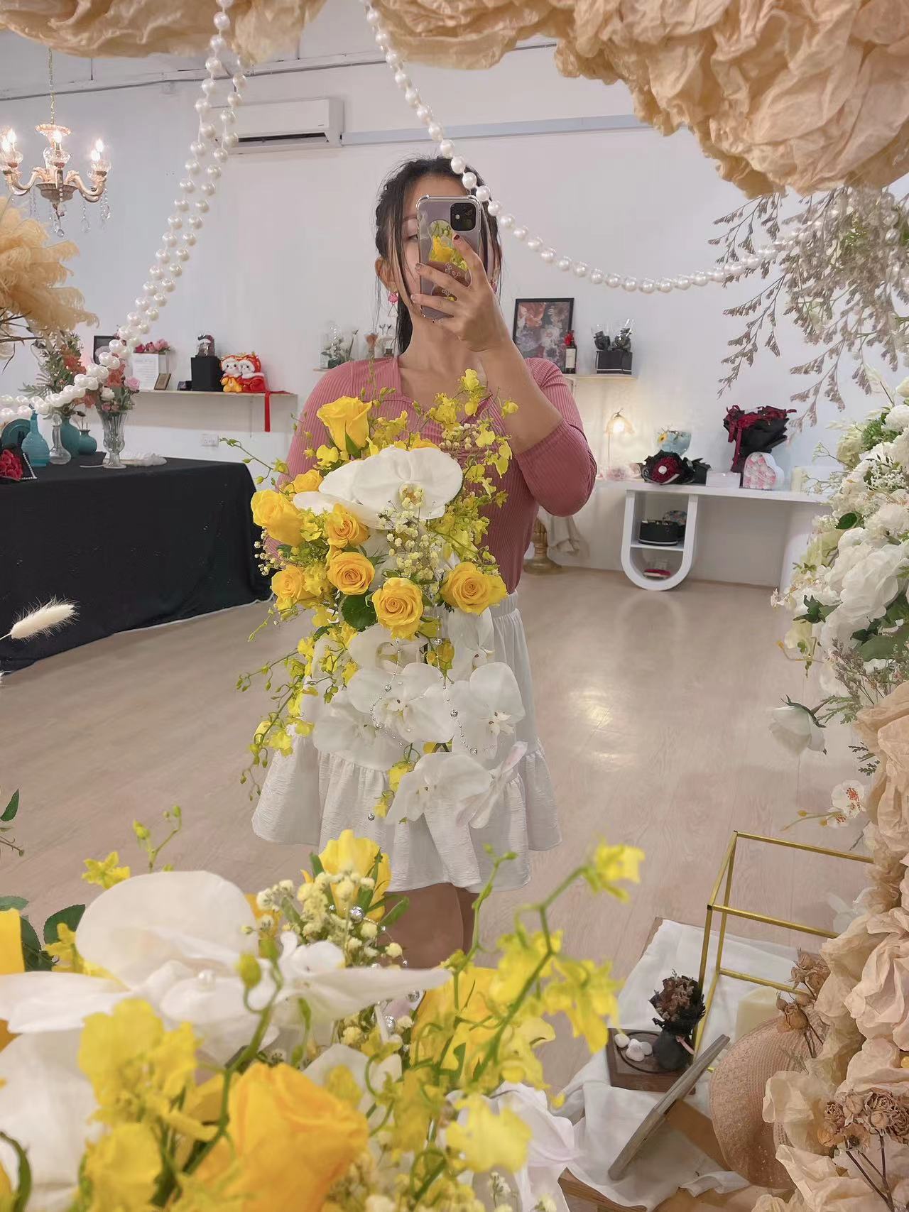 Fresh Kenya Yellow Roses Mix Phalaenposis Flower Bridal Hand Bouquet