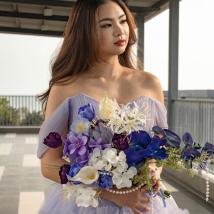 - 22stalks Menta Purple Roses + Cloth Mesh + White Wrapping (L size)