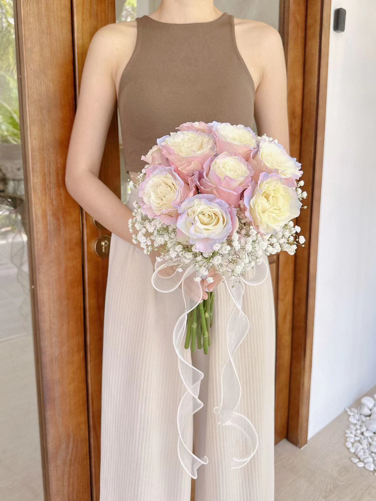 Fresh Ecuador Aurora Roses Flower Bridal Hand Bouquet