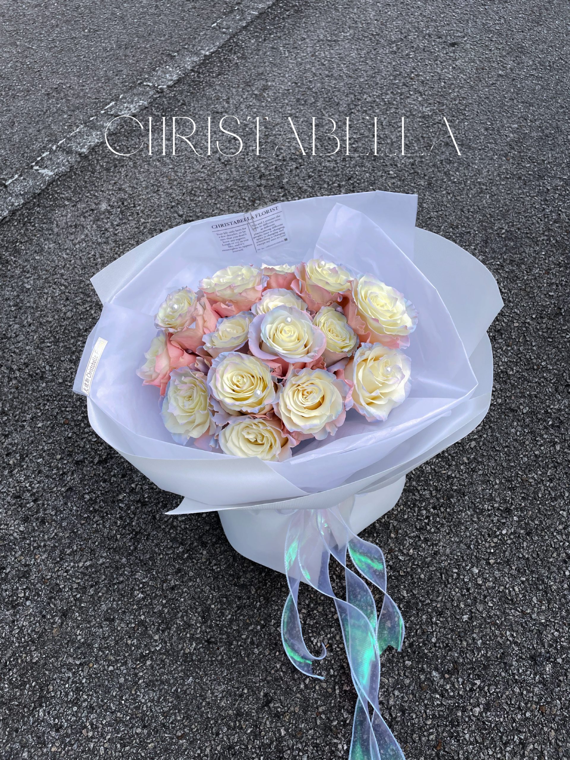 Details: 16 Stalks Fresh Ecuador Aurora Roses + White Wrapping