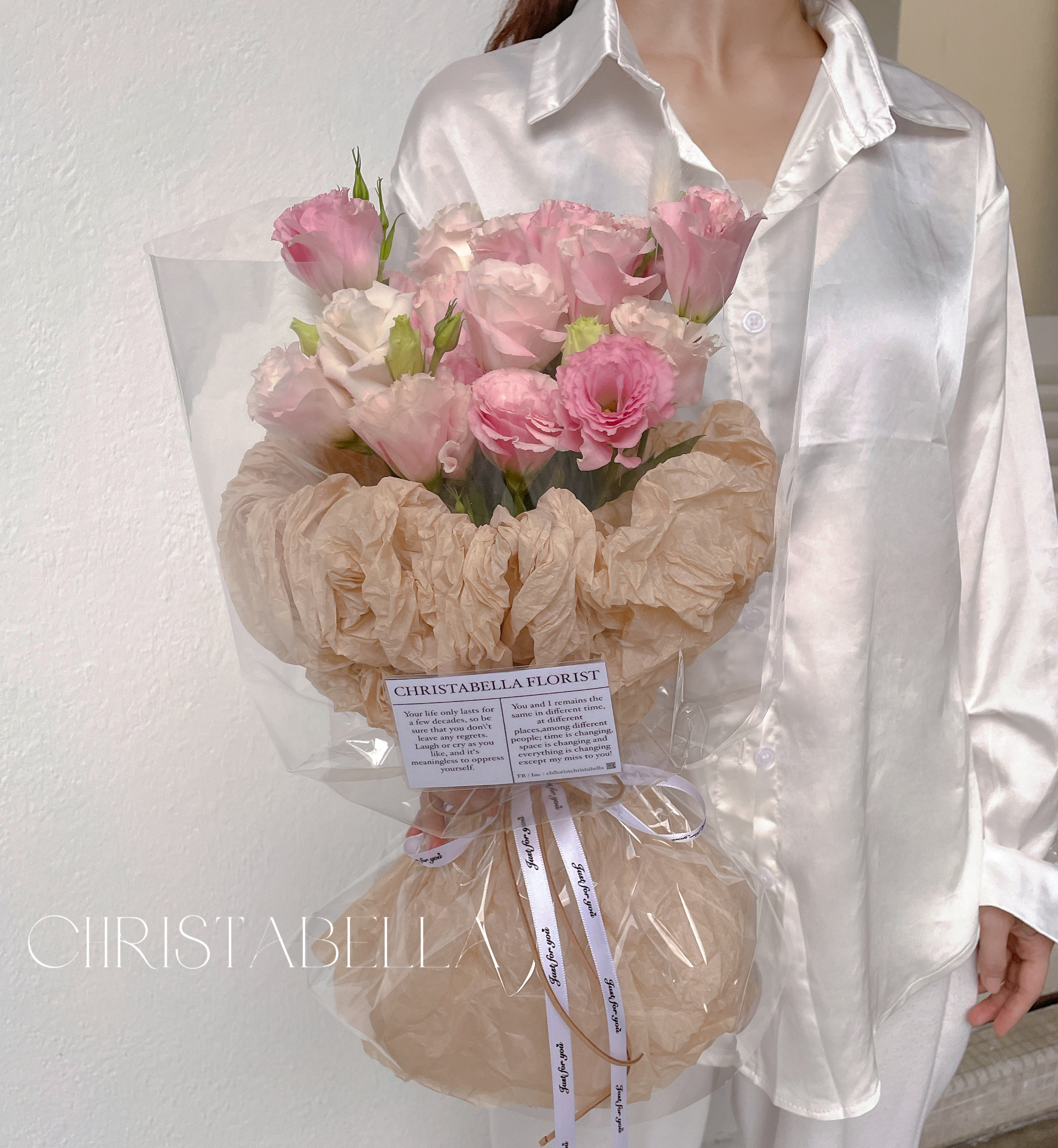 Details: 5 Stalks Fresh Ombre Pink Eustoma + Transparent Wrapping