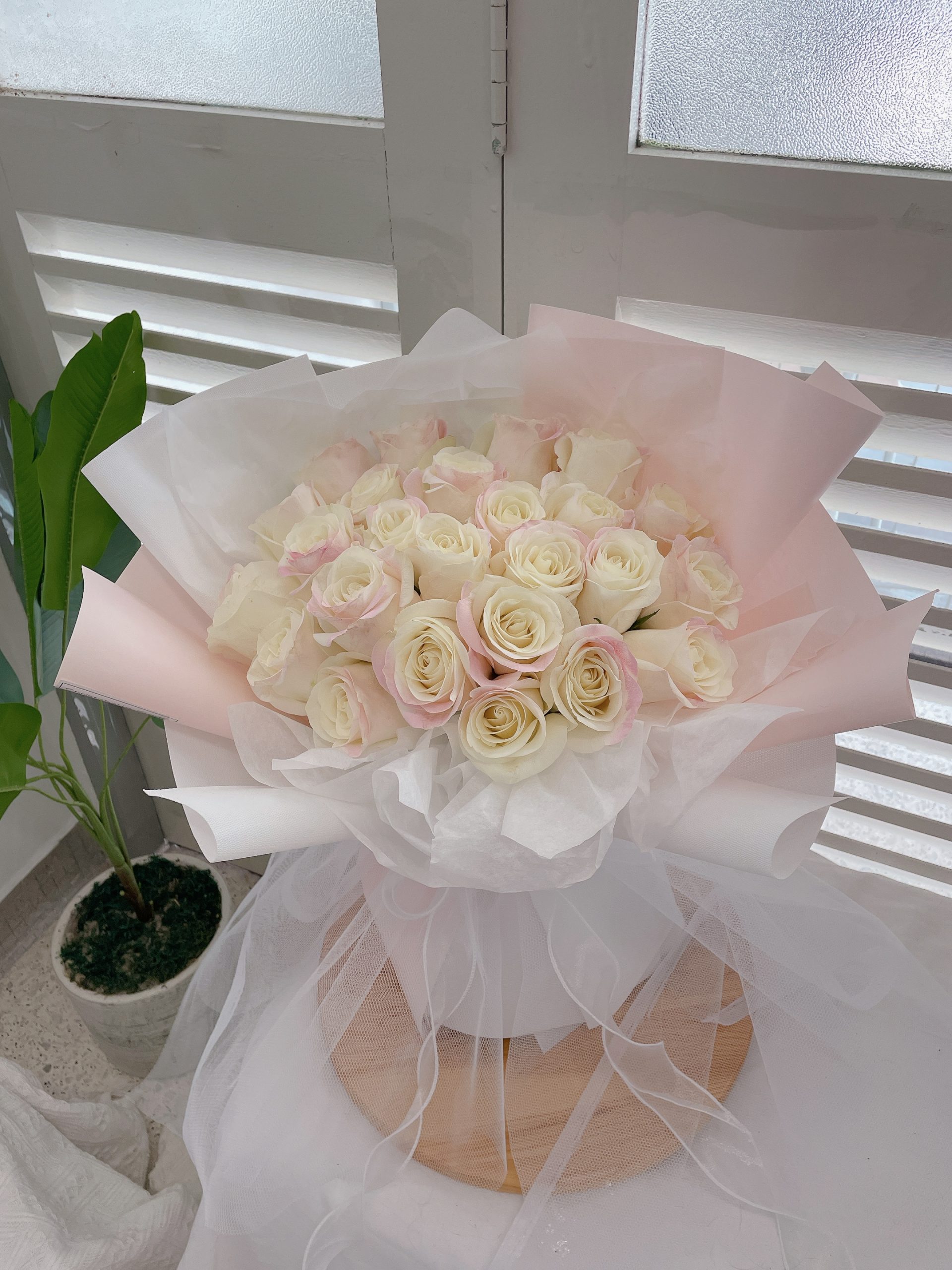 Details: 30 Stalks Fresh Kenya Ombre Pink Roses + Cloth Mesh + Pink Wrapping