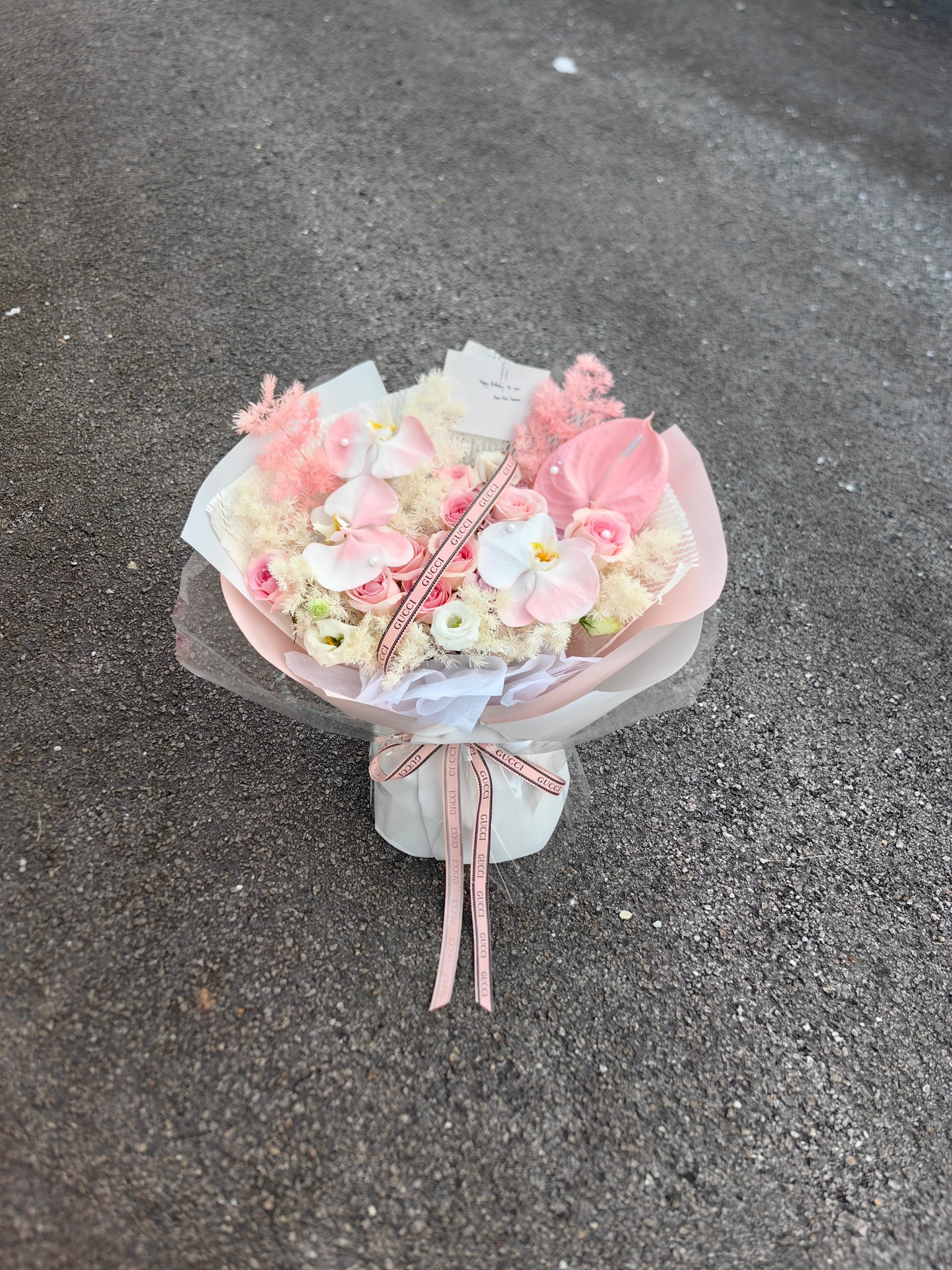 Fresh Mix Phalaenopsis & Pink Roses Flower Bouquet