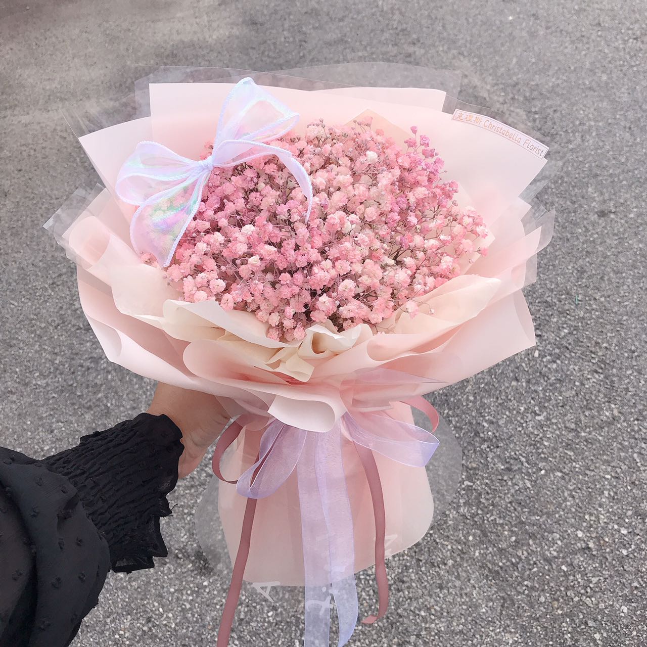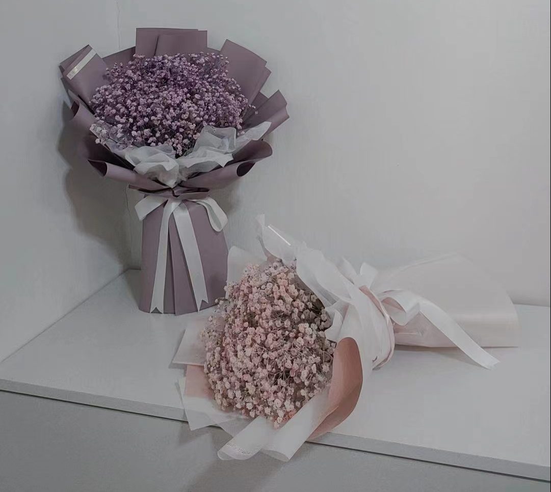 Details: S Size Fresh Purple/Pink Babye Breath + Purple / Pink Wrapping