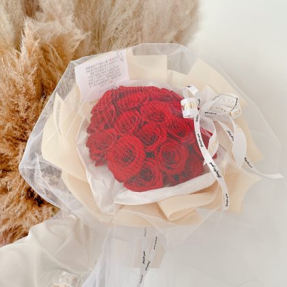 Details: 19 Stalks Fresh Kenya Red Roses + Cloth Mesh + Khaki Wrapping