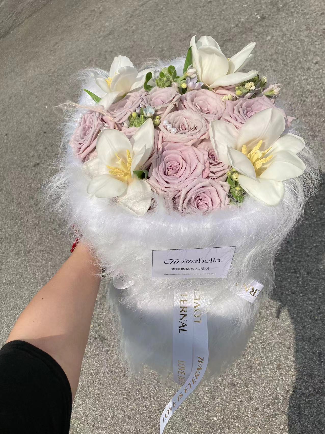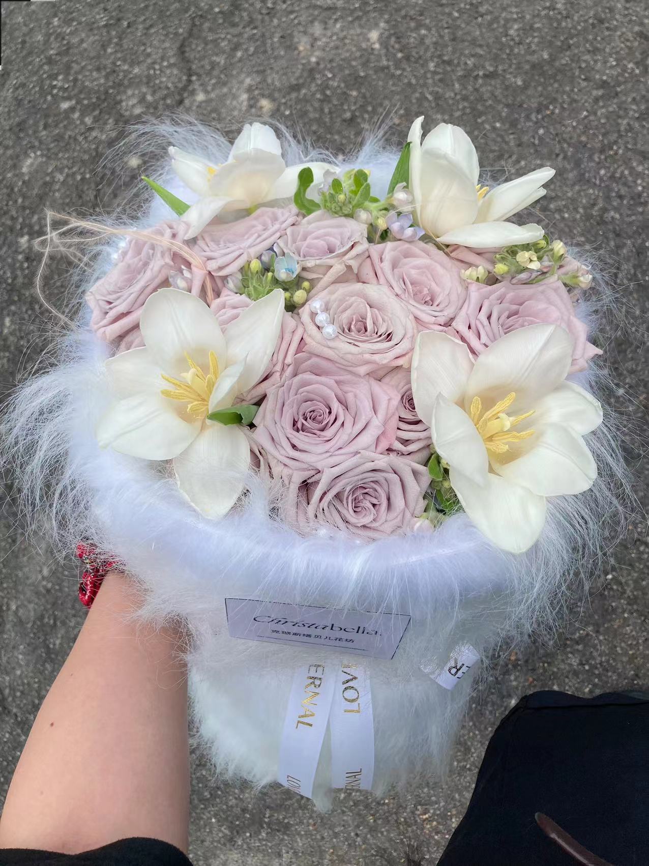 Fresh Mix White Tulip & Menta Roses Flower Bouquet