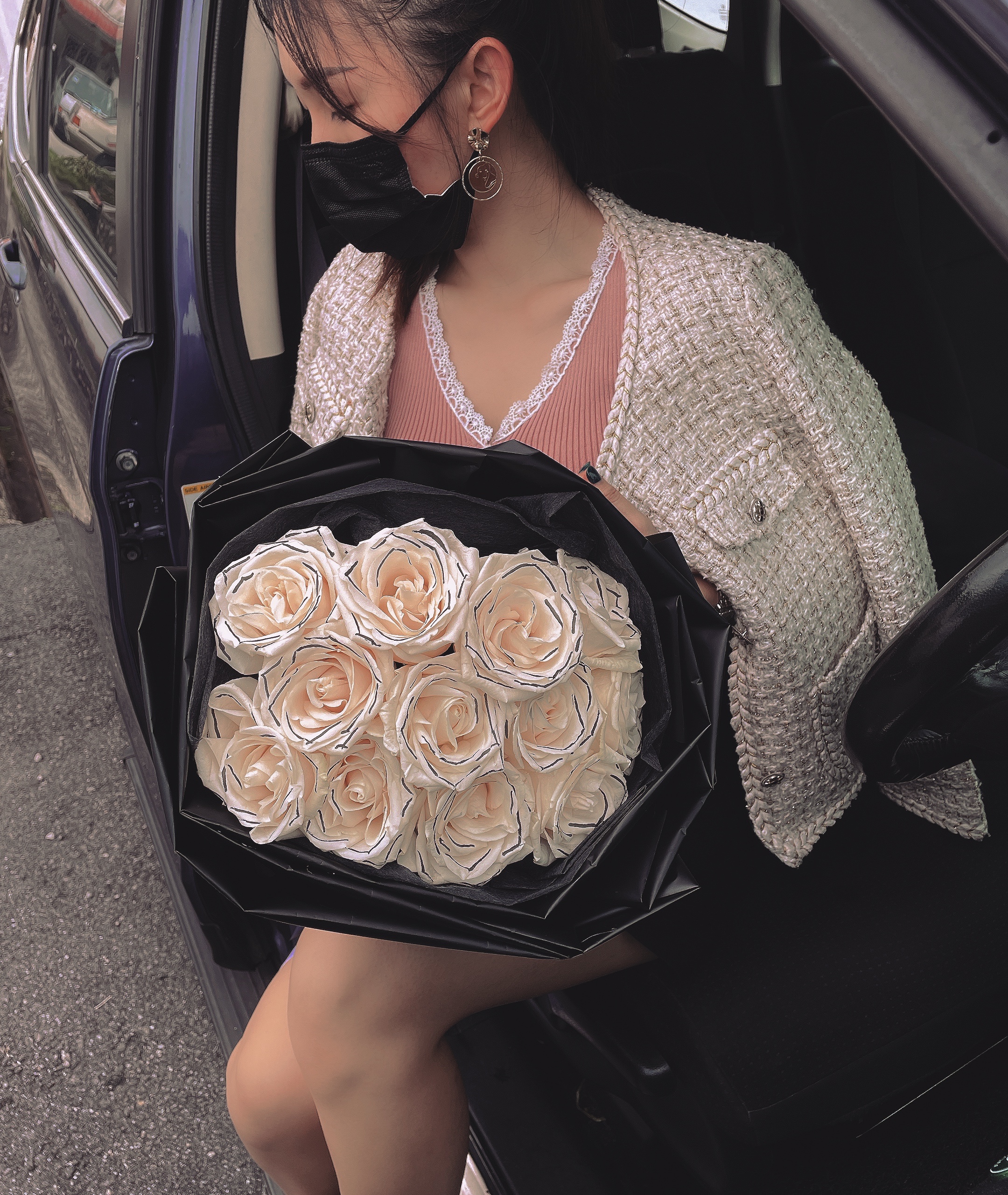 Details: 12 Stalks Fresh Ecuador Roses + Black Wrapping