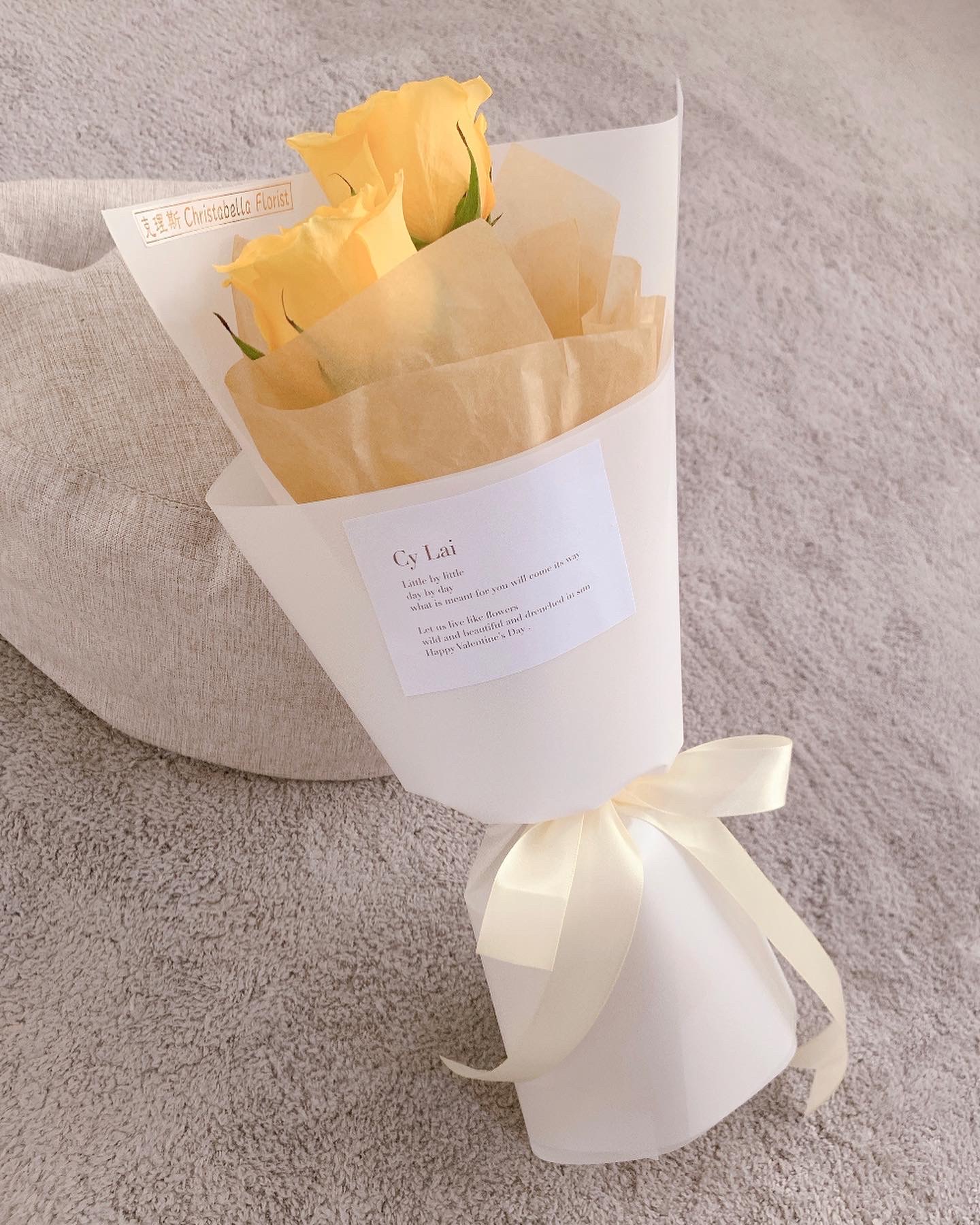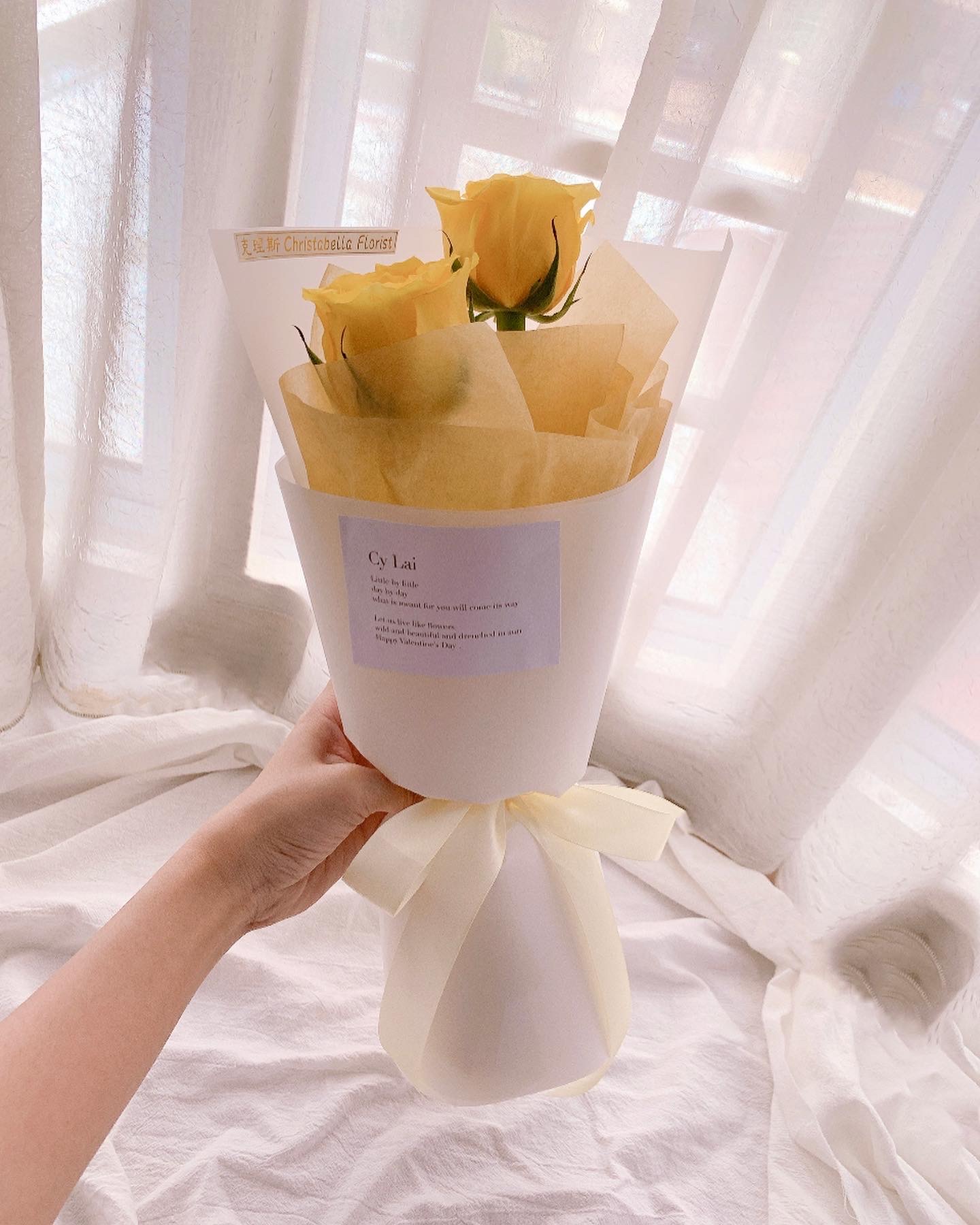 Details: 2 Stalks Fresh Kenya Yellow Roses + White Wrapping