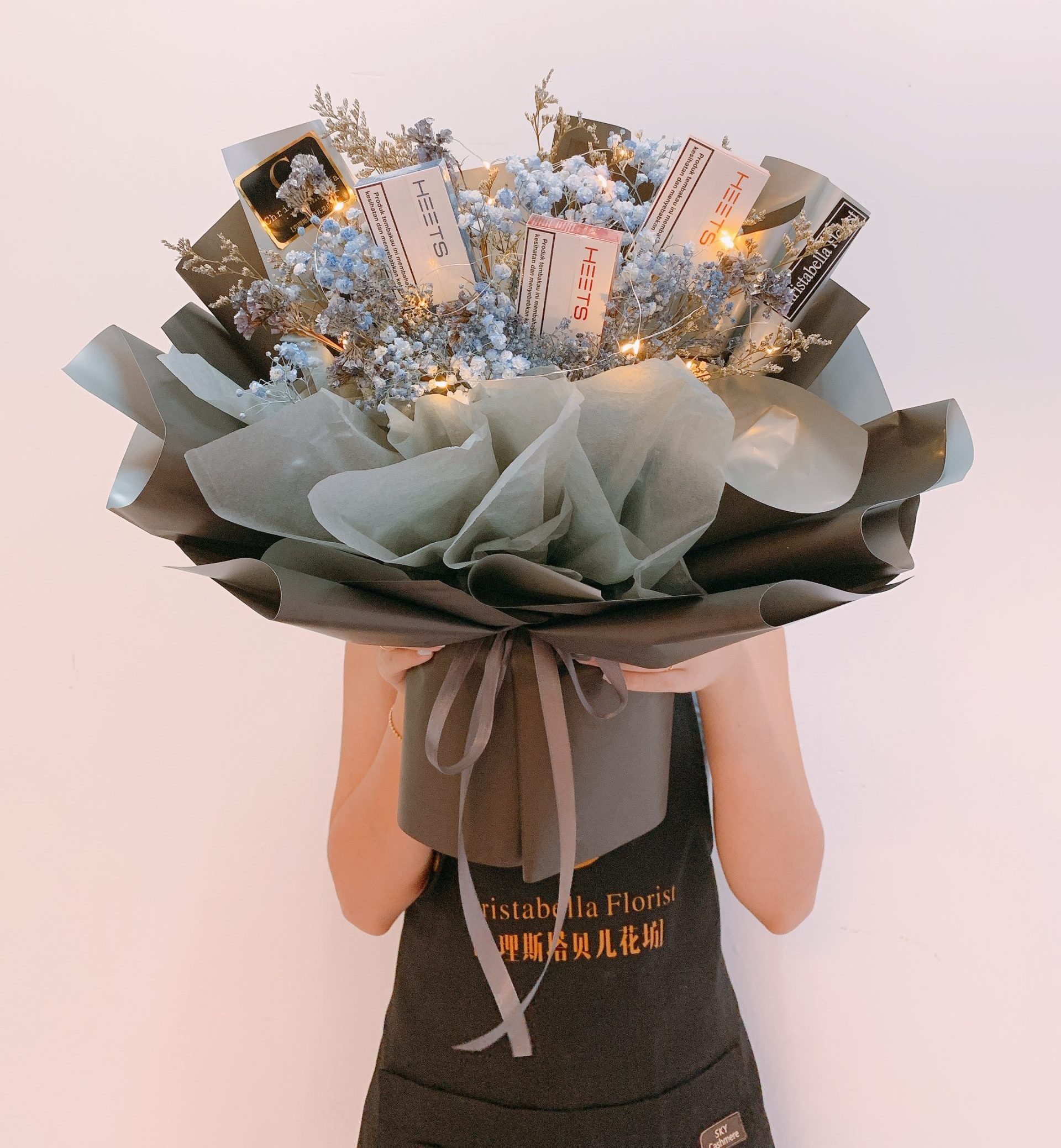 Details: 3 Heets + 2 Stalks Fresh Baby Breath + Black Wrapping