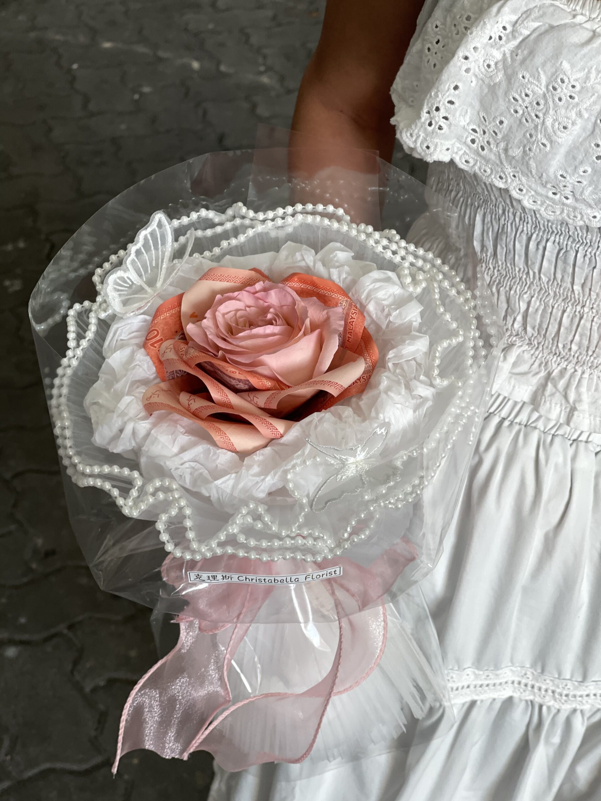 1stk Rose/Carnation + Cash RM50 + White wrapping (XS size)