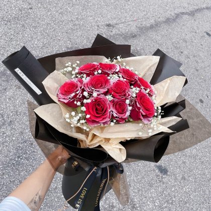 10 Stalks Fresh Red Roses Flower Bouquet