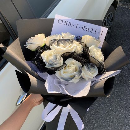 10 Stalks Fresh Ombre Black Roses Flower Bouquet