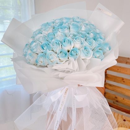 50 Stalks Soap Ombre Ice Blue Roses Flower Bouquet
