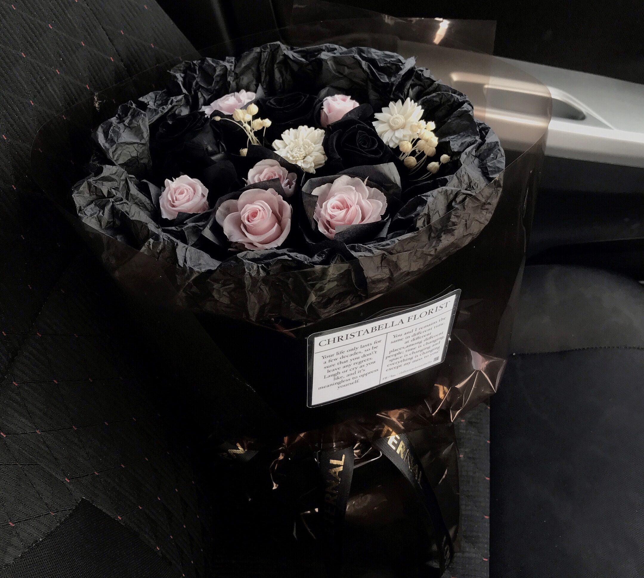 Details: 10 Stalks Preserved Flower + Black Wrapping 3*