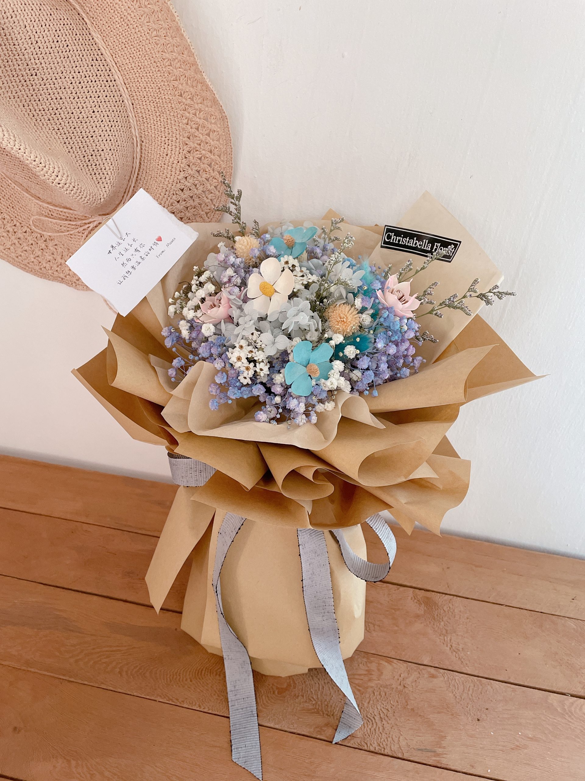 The size and color might vary of every differents bouquets. As all our bouquets and artwork are handmade by our dedicated florists.