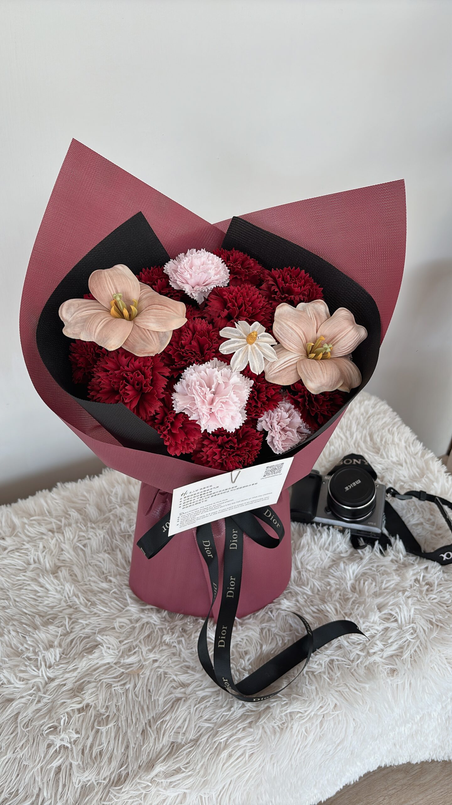 The size and color might vary of every differents bouquets. As all our bouquets and artwork are handmade by our dedicated florists.