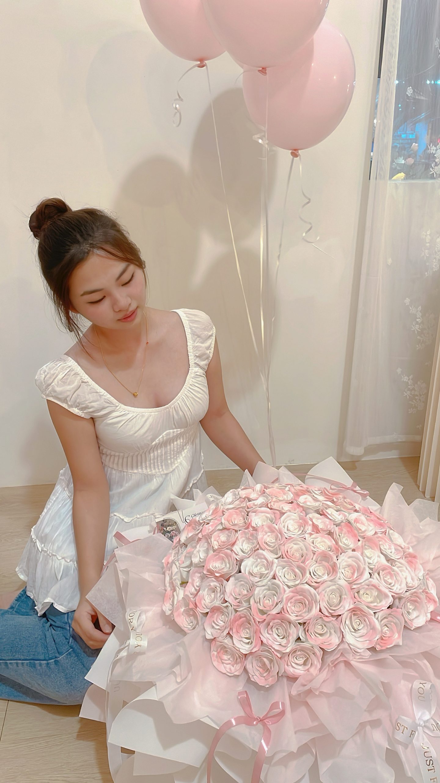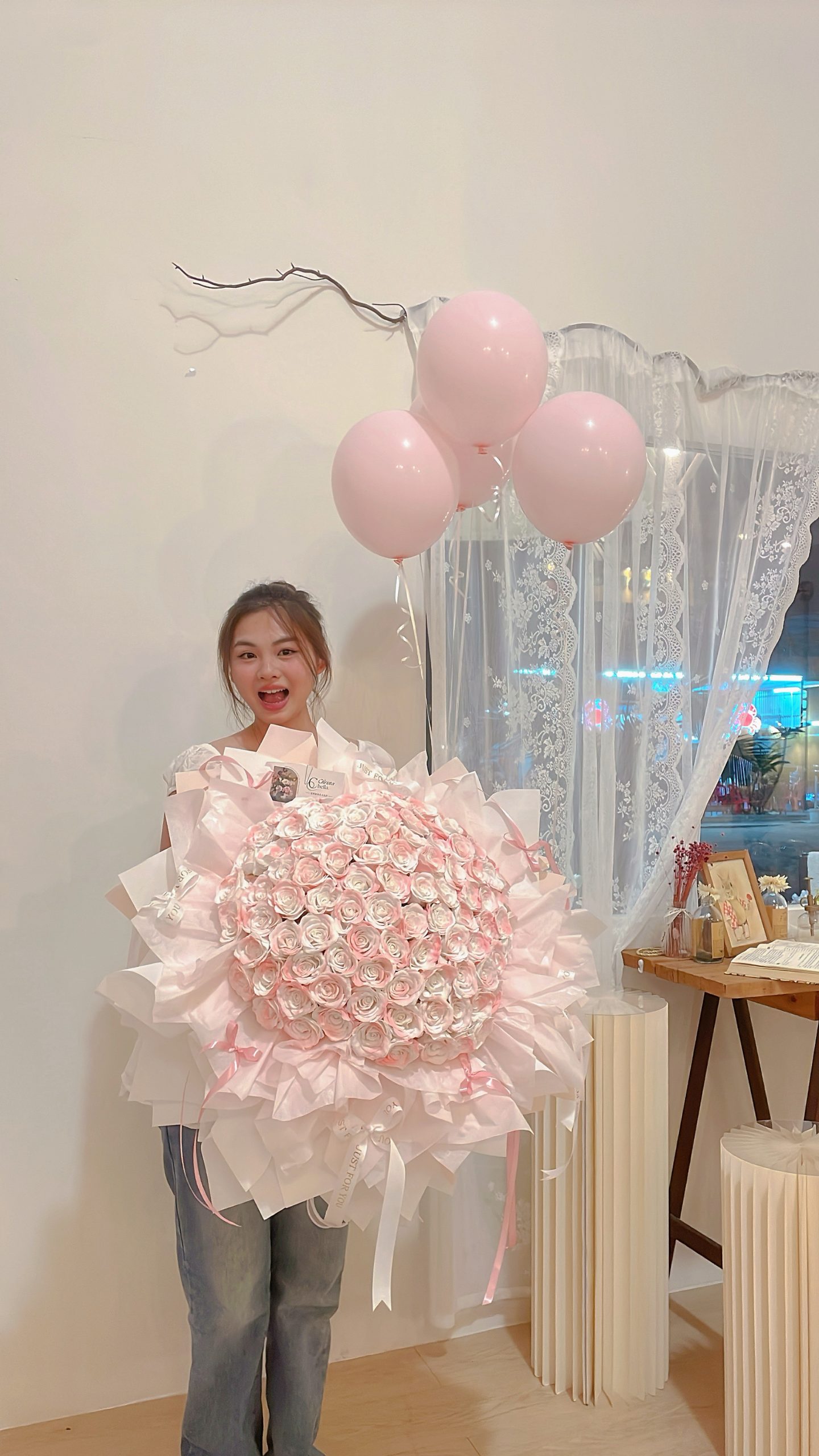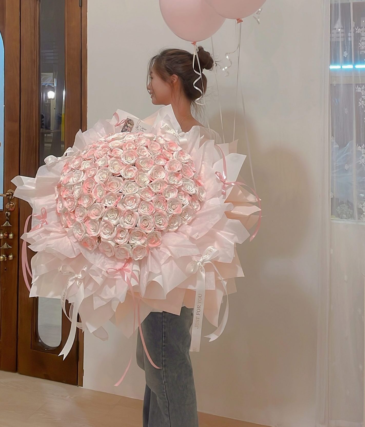 Details: 99 Stalks Soap Ombre Pink Roses + White Wrapping