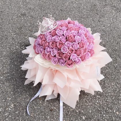 Details: 99 Stalks Soap Ombre Pink Roses + White Wrapping
