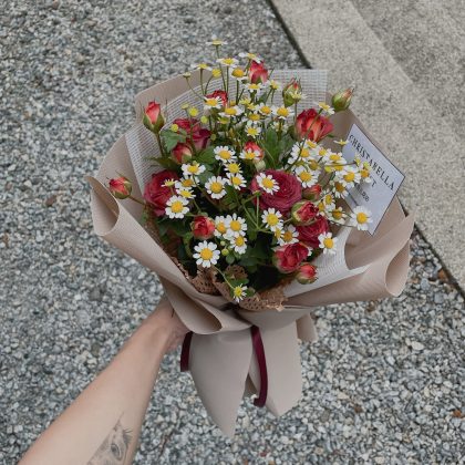 Fresh Chocolate Bubbles Roses Mix Chamomile Flower Bouquet