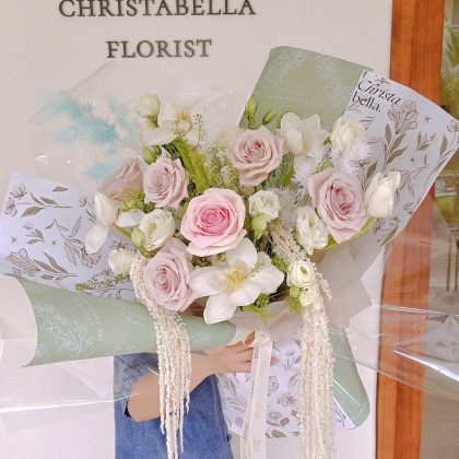 Fresh Mix Menta Roses & White Tulips Bouquet