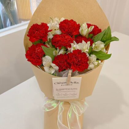 Fresh Mix Red Carnation & White Alstomeria Flower Bouquet(JUN)