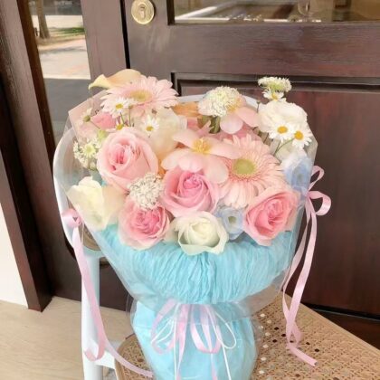 Fresh Mix Pink Roses & Gerbera Flower Bouquet(AUG)