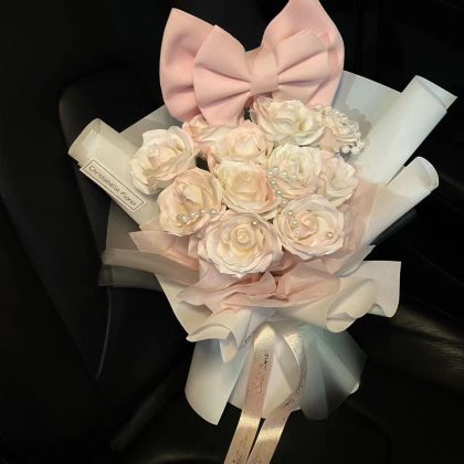 99 Stalks Soap White Roses Flower Bouquet-propose