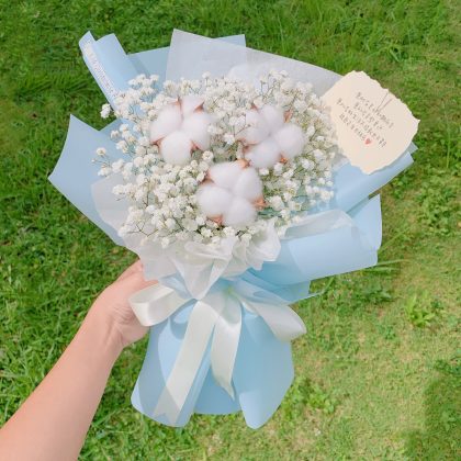 Fresh Baby Breath & Dry Cotton Flower Bouquet