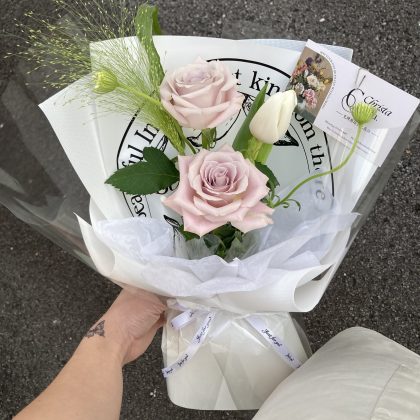 Fresh Mix Menta Roses & White Tulips Boqueut